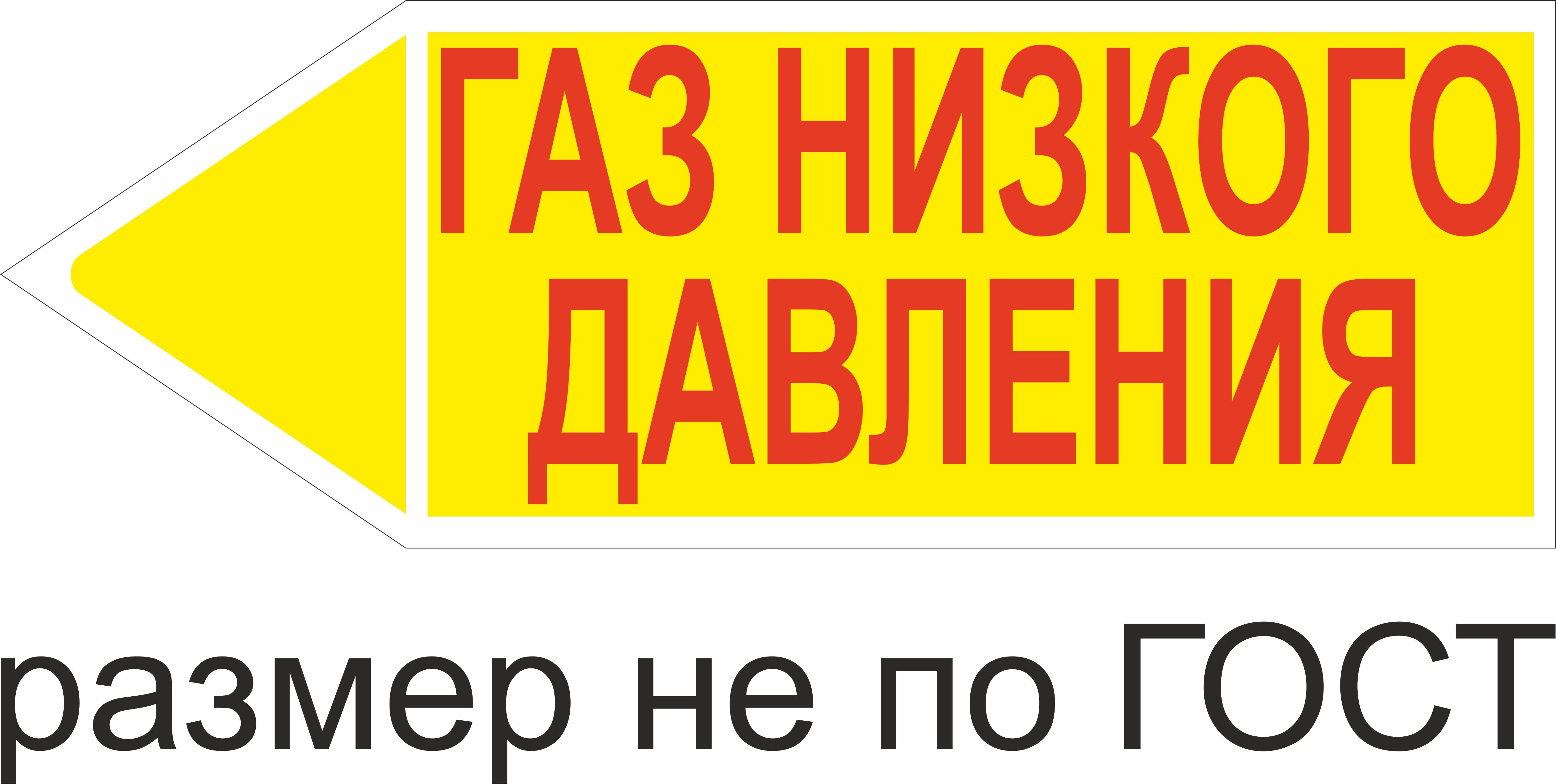 Маркер самоклеящийся Газ низкого давление 74х210 мм, фон желтый, буквы красные, налево
