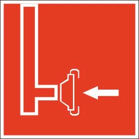 F10 Кнопка включения средств и (систем) пожарной автоматики. 150x150. Оцинкованный металл 05мм. Плёнка самоклеящаяся фотолюминесцентная.