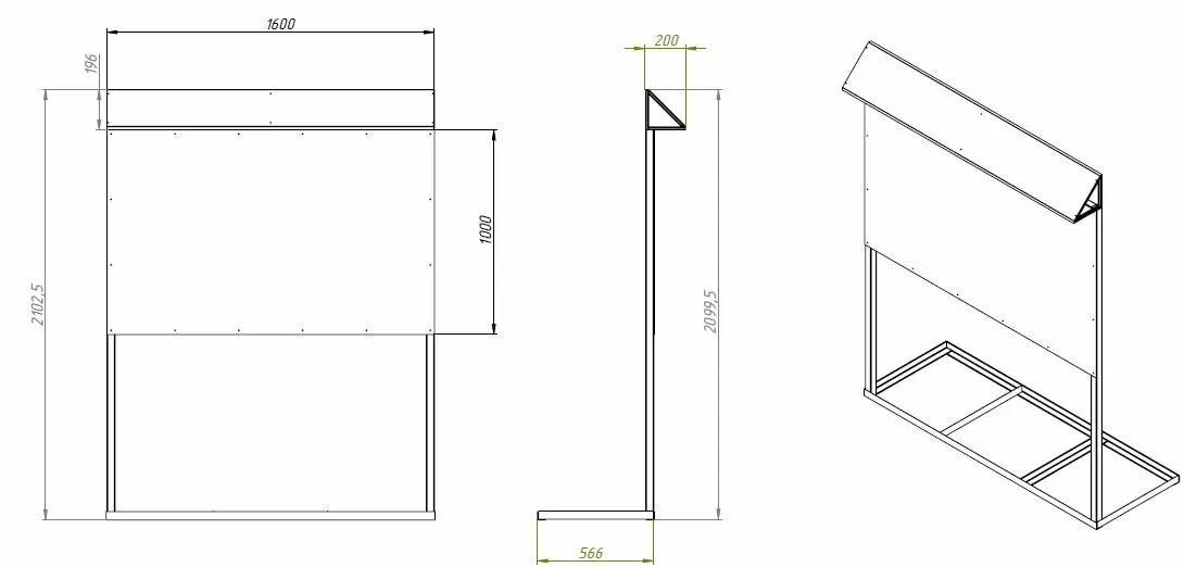 Основной материал стенда витрины: Металлокомпозит 3 мм, рама из профтрубы 40х40 мм, на стойках из проф. трубы 40х40 высотой 1900 мм, уголок для утяжелителей, козырёк из оцинкованного металла 0,8 мм, порошковая окраска по  RAL 7035. Код: ЦБ-00092532