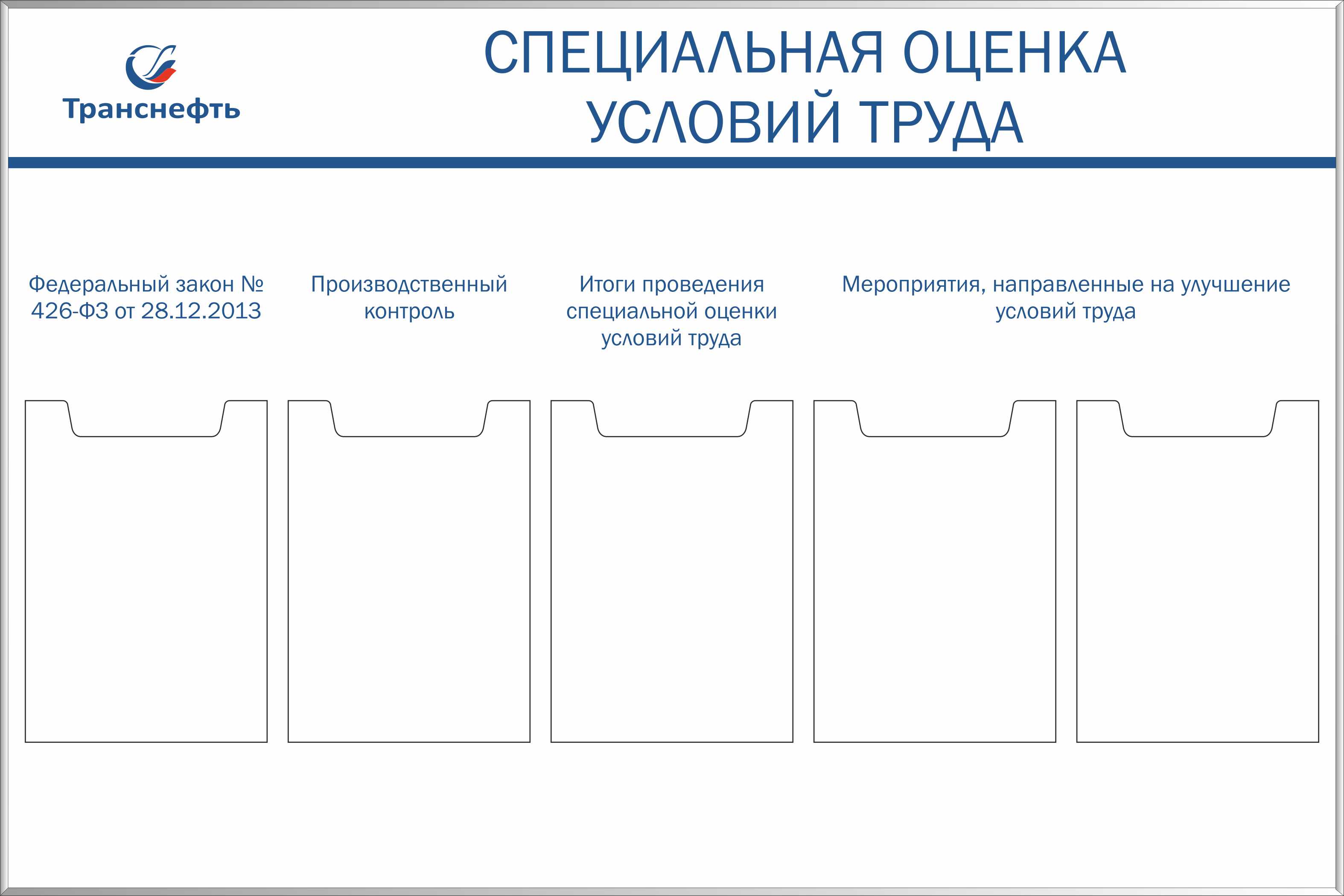 Стенд Организация обеспечения безопасности 3 плоских кармана А4, 2 объёмных кармана А4, 3 плаката А2 (1400х1200,Пластик ПВХ 4 мм, пластиковый профиль)