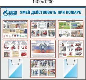 Стенд Пожарная безопасность, 6 плакатов А3 (1100х1200; Пластик ПВХ 4 мм; Алюминиевый профиль)