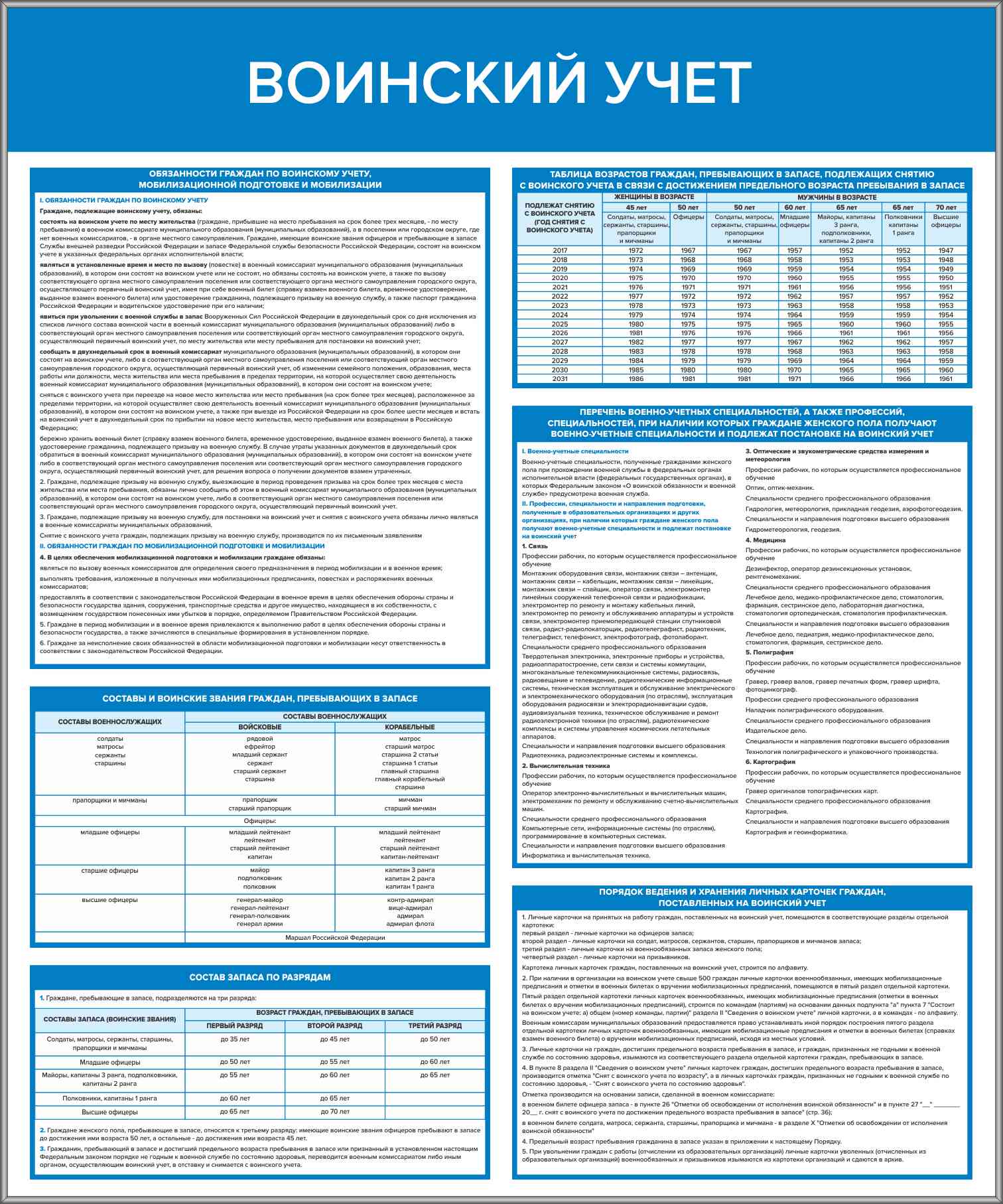 Стенд Воинский учёт (карман плоский А4-4шт, карман объемный А4-2шт, карман А4 -2шт глубина 20мм) (1200х1000; Пластик ПВХ 4 мм, алюминиевый профиль; )