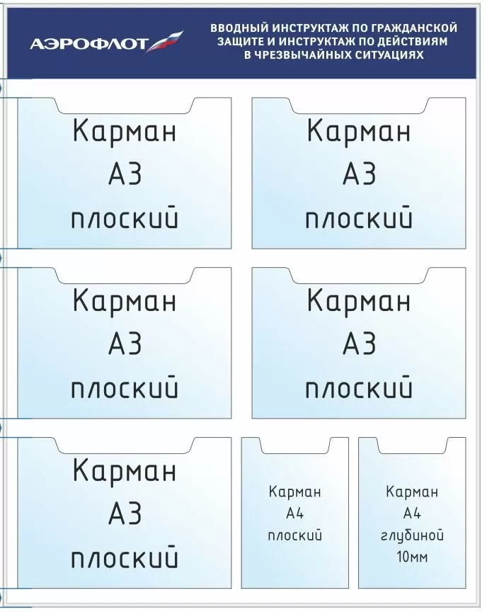 Универсальный стенд (без логотипа) "Воинский учет" с 4 плоскими и 4 объемными карманами под А4