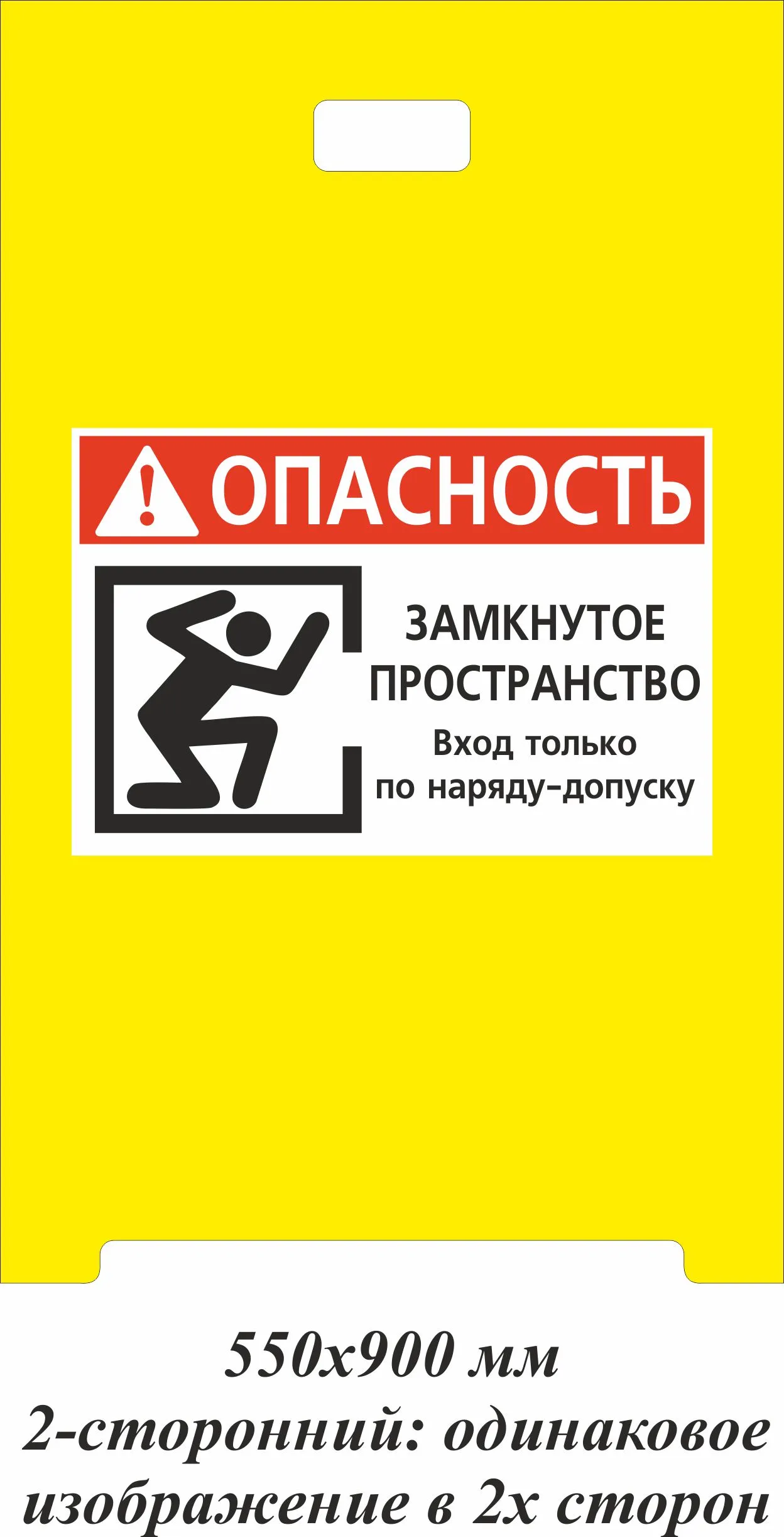 Штендер двусторонний «Опасность. Замкнутое пространство. Вход только по наряду-допуску»