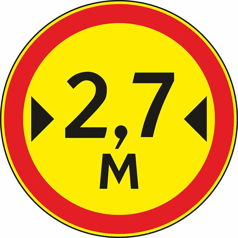 «Ограничение ширины» используют, чтобы запретить движение транспорта большей ширины, чем указано на табличке. Устанавливают перед искусственным сооружением, проезд через который затруднен из-за ширины между конструкциями менее 3,5 м, а также при приближении к узкому участку дороги. На знаке указывают ширину больше фактической на 20 см. По правилам повторная установка такого же знака целесообразна непосредственно в узком месте: предупреждение вывешивают на опоре или пролетном строении.
