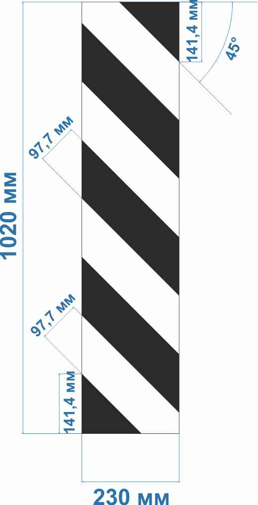 2.1.1 Знак вертикальной разметки Габарит слева с черными продольными линиями и белыми световозвращающими полосами. Используется для обозначения элементов дорожных сооружений в соответствующем направлении от проезжей части, если они могут быть опасны для едущей машины.